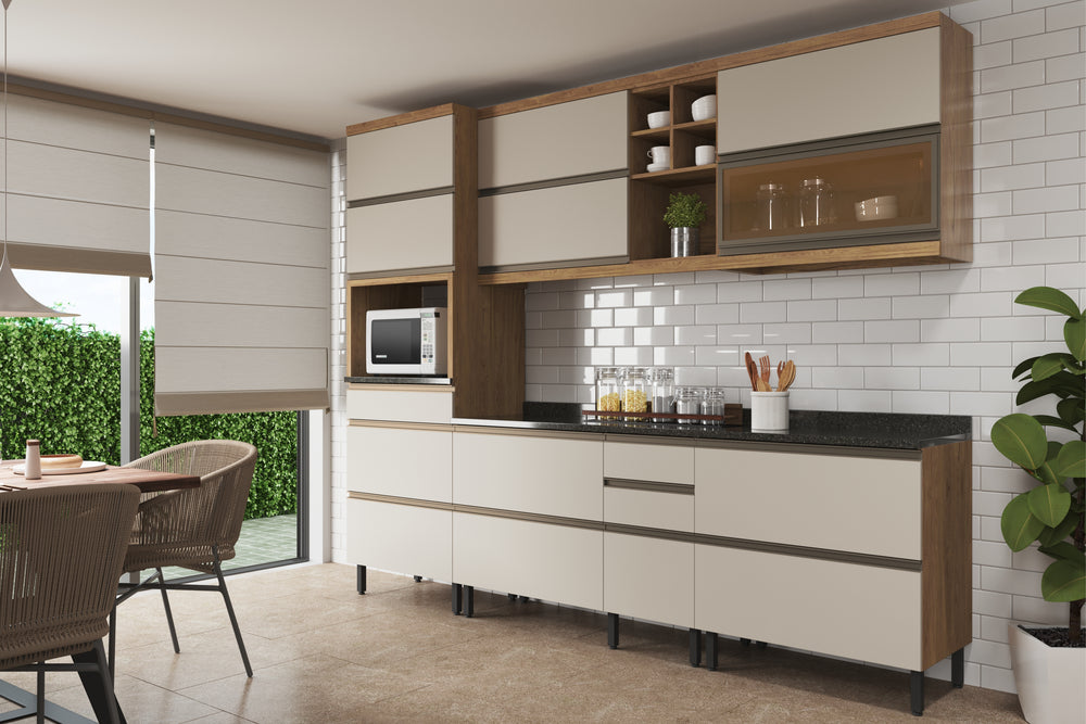 Armário Aéreo para Cozinha 2 Portas Basculante 1 Vidro Moderna Bertolini