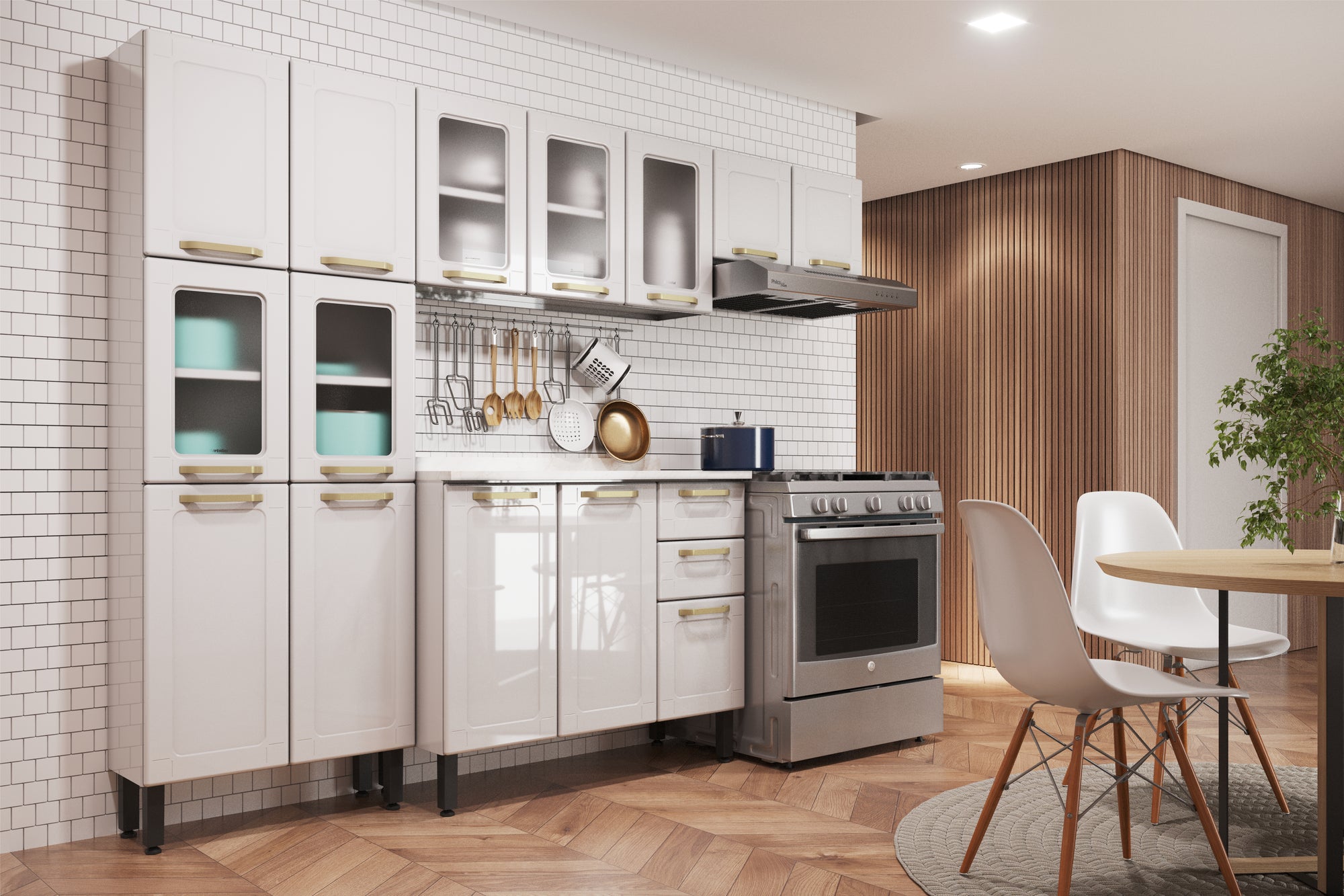 Armário Paneleiro de Cozinha em Aço 6 Portas 2 Vidros Colors Bertolini