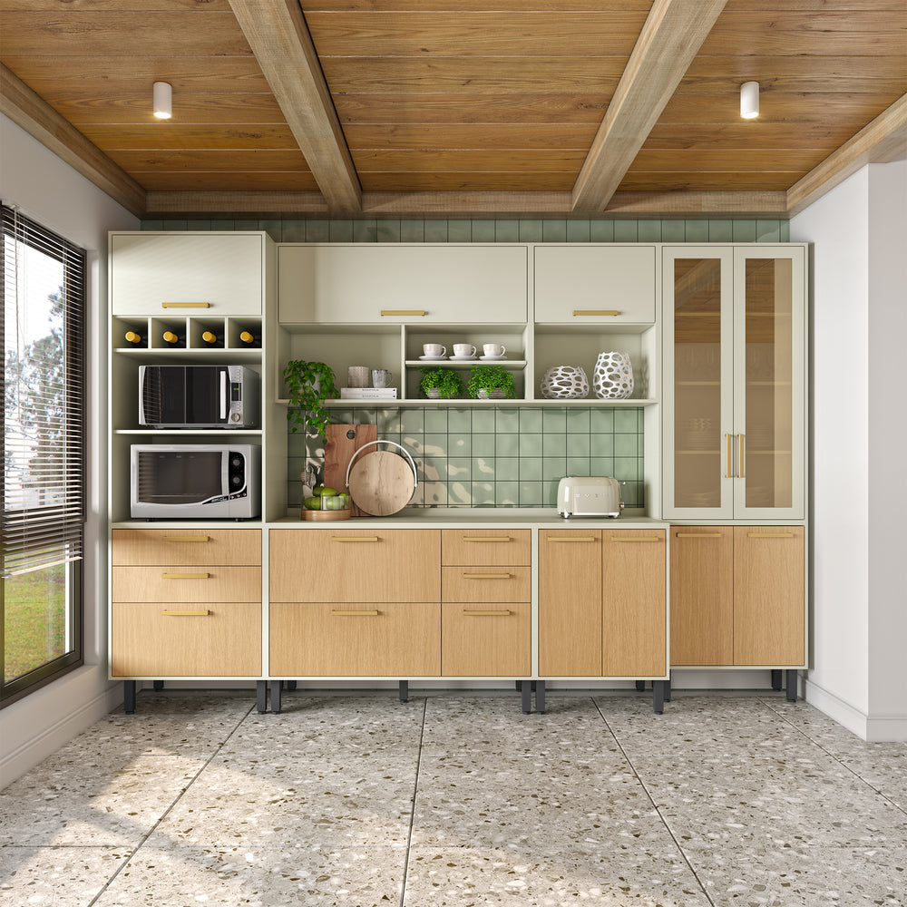 Balcão de Cozinha com Tampo 2 Portas 3 Gavetas Bossa Nova Bertolini